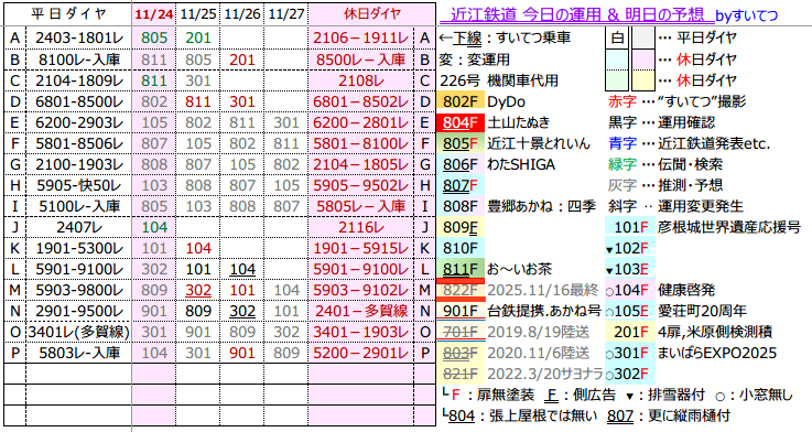 *運用状況・予想 ・A~Pの運用は “すいてつ” 版 近江鉄道ダイヤグラム参照